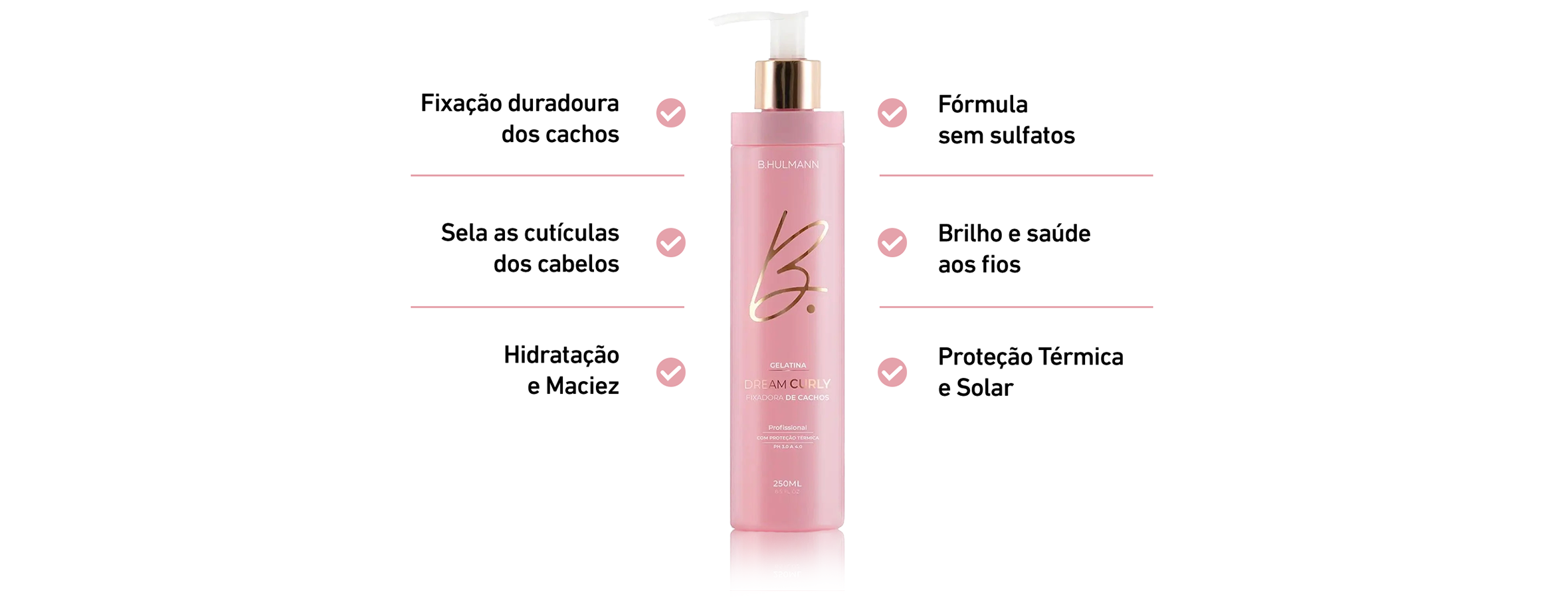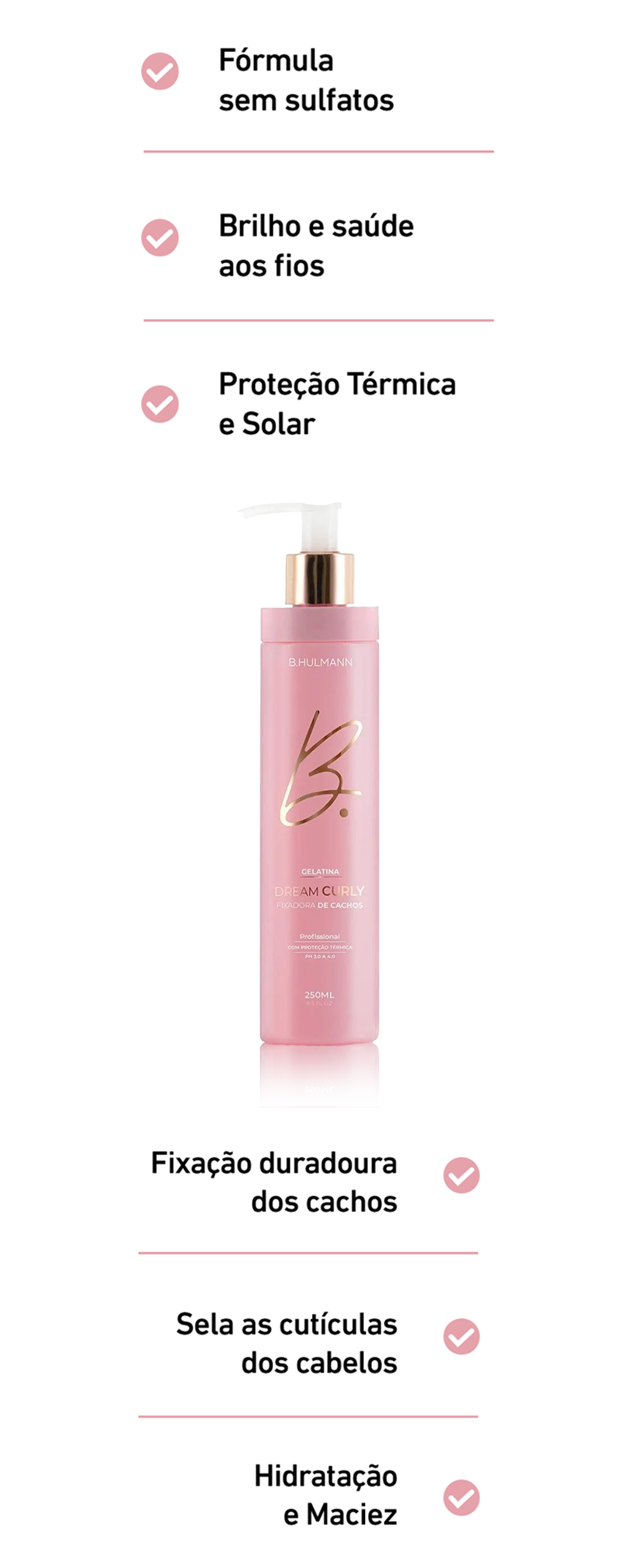 A gelatina é um fixador que ajuda a reter a umidade dentro do fio, o que proporciona maior controle de frizz e definição.
