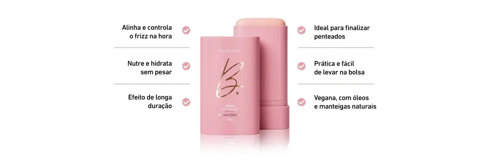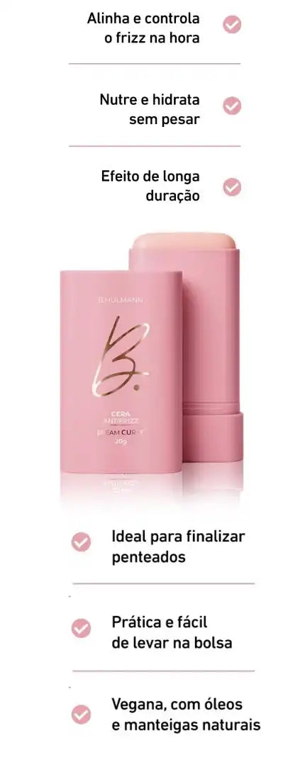 A Cera Antifrizz B.Hulmann foi desenvolvida para alinhar e controlar os fios com suavidade e eficácia, sem deixar aspecto molhado ou oleoso. Ideal para cabelos lisos, ondulados e cacheados, ela proporciona acabamento polido, com fixação leve e toque seco, sendo perfeita para estilizar penteados, alinhar o baby hair e até modelar as sobrancelhas.